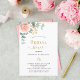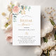 Um fundo branco chic. Decorados com ouro-rosa e folhas de eucalipto cor-de-rosa-esbranquiçada, flores de rosa e cor-de-rosa-esbranquiçada, galhos, verde-verde e um cinzeiro de ouro falso. Personalize e adicione o nome da noiva a ser e os detalhes da festa. Letras pretas e ouros coloridas. Traseira: cor de fundo rosa dourada.