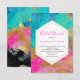Pintar em acrílico sofisticado e elegante brunch / convite para chá em rosa quente vibrante, lacre, brilho amarelo e paleta a cores pretas com pinceladas de abstrato e script moderno de tipografia totalmente editável. +++++++++ O convite é adequado para todas as estações em festas de estilo chic urbano moderno.