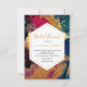 Pintar em acrílico sofisticado e elegante brunch / convite ao chá em vinho tinto vibrante, azul, verde, brilho dourado falso e paleta a preto com pinceladas abstrato e pinceladas e um moderno roteiro de tipografia totalmente editável. +++++++++ O convite é adequado para todas as estações em festas de estilo chic urbano moderno.