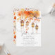 Este chá de panela apresenta um belo galho com folhas de outono e lanternas enforcadas bonito, fazer-o perfeito para um chá de outono. O convite é simples e elegante, com fundo branco e texto preto. O galho com folhas de outono e lanternas adiciona um toque de capricho e diversão, e o design geral é perfeito para celebrar o próximo casamento da noiva a ser.