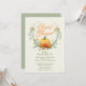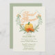 Chá de panela Modern Fall Wreath apresentando uma bela faixa verde de folhas de outono com uma abóbora e flores delicadas com tipografia moderna. Perfeito para um chá de casamento de outono!
