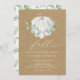 Se apaixonem! Celebrar com este chá de panela rústico e caprichoso. Apresenta ilustrações em aquarela de uma abóbora branca, verde e coroa de flores brancas com fundo kraft falso. Personalize adicionando nomes, data, hora, local e outros detalhes do evento. Este convite para abóbora é perfeito para chás de panela de outono.