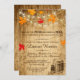 Casamento outono de convite para um casamento no campo com folhas caídas, botas de cowboy, barril e luzes de cordas sobre um fundo de madeira. As imagens menores são editáveis e podem ser removidas, se necessário. O texto, fonte e cor são todos editáveis. Clique no botão "Personalizar" para obter mais opções. Este cartão corresponde a uma coleção na minha loja.