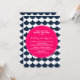 Chá de panela de padrão Scallop cor-de-rosa e marinho com padrão escallop / ondas azul e branco marinho e crachá rosa-quente. Moderno e caprichoso - perfeito para praia e chás de panela temáticos náuticos.