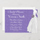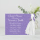 Chá de panela apresenta noiva de vestido com buquê em fundo de paisley roxo. Os convites vêm completos com envelopes e sua escolha de papel.