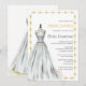 © Socialite Design Inc. & LICENSORS. Belo chá de panela de design de cor da água do vestido de noiva, digno de uma socialite. O convite é enquadrado por uma falsa borda de folha de ouro. Um convite elegante para um primavera, verão, outono ou chá de panela de inverno.