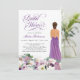Sério, ooh la la! Ponha o tom para seu chá de panela luxuosamente elogioso com este convite, apresentando uma linda noiva em um vestido, lindas flores botânicas lusaciosas em tons de lavanda, violeta, roxo e elegante texto. Personalize-o para o seu evento. Há um tom ligeiramente rústico com as flores no verso e a madeira de latido de pássaro, o que torna este design perfeito para os seus eventos de primavera, verão ou casamento outono e chá. Procure outras cores neste design, incluindo noivas bonitas em vários tons de pele e cores de cabelo, para torná-lo verdadeiramente pessoal! Você pode personalizar todo o texto e alterar a cor do plano de fundo para o que você escolher.