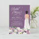 Sério, ooh la la! Ponha o tom para seu chá de panela luxuosamente elogioso com este convite, apresentando uma linda noiva em um vestido, lindas flores botânicas lusaciosas em tons de lavanda, violeta, roxo e elegante texto. Personalize-o para o seu evento. Há um tom ligeiramente rústico com as flores no verso e a madeira de latido de pássaro, o que torna este design perfeito para os seus eventos de primavera, verão ou casamento outono e chá. Procure outras cores neste design, incluindo noivas bonitas em vários tons de pele e cores de cabelo, para torná-lo verdadeiramente pessoal! Você pode personalizar todo o texto e alterar a cor do plano de fundo para o que você escolher.