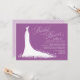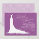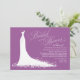 O chá de panela elegante para a noiva-a-ser apresenta uma fonte de escrita de caligrafia de ornamentado e um vestido de noiva fluente. O escroto floresce, flores e borboletas detalham o vestido etéreo. Cor branca, lavanda roxa e design violeta.