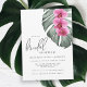 Planeje um belo chá de panela de temas tropicais com este design botânico elegante. Apresenta um trio de delicadas orquídeas cor-de-rosa-rosa-fochsia e uma bela folha monstera em tons de aquarela. A design é simples e elegante com um olhar minimalista energizado pelos elementos botânicos tropicais. Quer estejamos a celebrar à volta de uma piscina ou dentro e à volta de uma área costeira, esta pop design com estilo ilha. Personalize o modelo de texto fácil de usar com os detalhes do evento.
