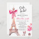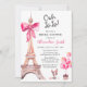 A aquarela bonita do chá de panela de Paris apresenta uma Torre Eiffel com aquarela, um cachorro francês giro, macarões e uma caixa de compro com balões. Personalize com suas informações de evento.