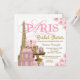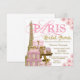 Chá de panela de Paris com uma bela Torre Eiffel de ouro, pacotes elegantes de presentes de Paris, calçados de salto alto com brilho dourado e roteiro de Paris cor-de-rosa rico num fundo floral roxo e preto. Este belo chá de panela de Paris é facilmente personalizado para o seu evento, simplesmente adicionando os seus detalhes no estilo de letra e cor, e a redação da sua escolha. Este é um design impresso sem diamantes reais, joias, brilho, etc.
