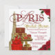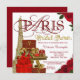 Chá de panela de Paris com uma bela Torre Eiffel de ouro, pacotes elegantes de presentes de Paris, calçados de salto alto com brilho dourado e roteiro de Paris vermelho rico em um fundo de rosa vermelha rica. Este belo chá de panela de Paris é facilmente personalizado para o seu evento, simplesmente adicionando os seus detalhes no estilo de letra e cor, e a redação da sua escolha. Este é um design impresso sem diamantes reais, joias, brilho, etc.