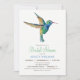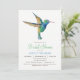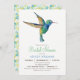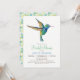Chá de panela de beija-flor. O convite apresenta um Hummingbird verde e azul e um padrão floral.