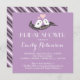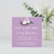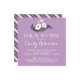 Convite em forma quadrada roxa e branca com padrão de listras doces no verso. Design clássico e vintage com pombinhos fofos, coração e amor. Personalize os convites para o casamento, chá de panela, chá de casais, festa de noivado, chá de fraldas, festa de aniversário ou qualquer ocasião especial.