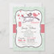 Cor rosa, verde-menta, esticada, e pássaros brancos bonitinhos, corações, flores, e convite para chá de casamento de moason jar em um padrão paisley verde-claro.