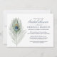 Belas convites de chá de panela apresentam uma pena de pavão solteiro em aquarelas moles, com seus detalhes de evento em uma mistura de caracteres de blocos e scripts. Uma elegante escolha para as noivas modernas, essa design é formal e refinada sem ser abafada e incorpora tipografia clássica e um elemento de aquarela de tendência. A placa se reverte para coordenar azul sólido.