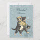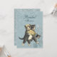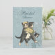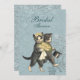 Chá de panela personalizável divertido. Divertido Salve o design de Data. O doce gato de noiva vintage segura um buquê de casamento de rosa branca e o gato do Groom fica ao seu lado com seu chapéu preto. Fundo de Aqua floral. Personalize com seus nomes e texto da data do casamento.