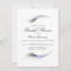 Convites de chá de panela Pavões Roxos. Um chá de panela simples e divertido criado com lindas penas pavão roxo e lacrimogêneas com textura aquosa. Personalize este chá de panela com suas informações e qualquer mensagem personalizada que você queira incluir.