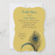 Penas de pavão elegantes enfeitam este Chá de panela sobre um fundo amarelo. O convite é apresentado no documento de base; no entanto, recomendo ao cafetão do papel-martelo pérola que faça sair a iridescência das penas.