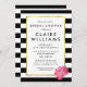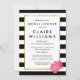 Escolha estes belos convites para a noiva clássica moderna! Possui fundo preto e branco, borda falsa dourada e uma bonito coloração rosa em aquarelas brilhantes e vibrantes. Adicione os detalhes do seu chá de panela em uma combinação chic de caracteres de bloqueio e escrita em preto nítido.