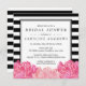 Belos convites de chá de panela pretos e cor-de-rosa anunciam seu evento para convidados no estilo moderno, mas elegante. As cartas quadradas apresentam fundo de faixa branca e preta e um agrupamento de peões aquosos em quartzo cor-de-rosa brilhante e rosa macio, uma cor do ano em 2016. Adicione seus detalhes de evento em uma combinação de teclas de bloco e itálico para uma aparência clássica com um toque.