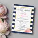 Escolha estes belos convites para a noiva clássica moderna! Apresenta um fundo de faixa de marinho ousado, borda falsa dourada e um grupo de peões em tons bonito de branco. Coordena-se com nosso Marinho Stripe & Blush Peony office supply, produtos de papel, artigos domésticos e acessórios.
