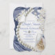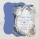 Seda azul e pérolas de marfim decoradas com Tuberoses mexicanas. São flores brancas cerosas que têm uma fragrância rica e sedutora.