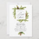 Pinheiros de moda verde e branco de inverno chá de panela aquarela convites para cones de pinheiros.
