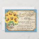 buquê de girassol em jarro de mason envolvido com burlap, lace, arco de fio e um design de chá de panela de piquenique de gingham azul de fundo.