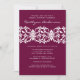 Comece seu evento bem com nosso Chá de panela apresentando uma linda damask branca em um plano de fundo de ameixa de moda. Combinação de cor branca e de ameixa. Personalize nosso convite com suas informações de chá de casamento e você está pronto para ir. Disponível em outras combinações de cores em www.celebrateitinvites.com
