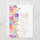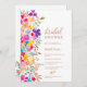 Uma moderna e delicada mão pintada de flores silvestres de jardim em tons brilhantes, rosa, vermelho, azul, amarelo e verde, com uma elegante letra de pincel para celebrar seu chá de panela de estilo ao ar livre de verão.