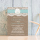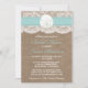 Este chá de panela de praia de areia turquesa vai fazer o anúncio perfeito para qualquer noiva! A design apresenta um adorável fundo de efeito de burvolta rústica com uma trim romântica de efeito de renda branca vintage terminada com um dólar de areia atordoante em uma fita de turquesa. Esses convites podem ser personalizados para sua ocasião especial e farão o anúncio perfeito para qualquer casamento na praia, chá de panela, festa de noivado, festa de aniversário e muito, muito mais. *Observe que o Zazzle só vende convites impressos para que esses convites não tenham nenhum material real de burlap, renda, dólar de areia ou fita.