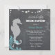 Silhueta grande de cavalo marinho, ondas oceânicas e bolhas com texturas de quadro fino concebidas em Convites de chá de panela personalizados. Convites para chic e diversão para seu chá de casamento de tema de verão ou praia! ((Você pode encontrar os essenciais de casamento e favores nesta loja, Bridal Heaven. Entre em contato com ujean4791@gmail.com para obter trabalho personalizado e/ou coordenar papelaria de casamento.)