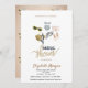 O convite para chá de fraldas bonito inclui fatos de natação, chapéu, saco, óculos de sol, flutuação de sacudir, livro e âncora floral. Esses convites de chá de panela são facilmente personalizados para o seu evento simplesmente adicionando seus detalhes.