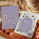 A design apresenta uma exibição intrincada de flores silvestres boho, cuidadosamente curadas em tons suaves, moídos, de lavanda, bege e mostarda.