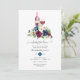 Convite para provando de vinho de chá de panela de aquarelas com marinho azul, branco e marrom e rosas com tipografia elegante para escrita manual.