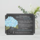 Chalkboard inspirado num buquê azul de hydrangea em um doce coração gravado com cartão de chá de panela de jarro de mason.
