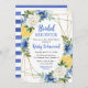 Convites Chá de panela de Quadro Dourado das Flores Azul e