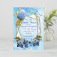 Uma cena de Natal de inverno Azul com uma estrutura de ouro geométrico é fácil de personalizar com sua redação, fonte, cor da fonte, forma de papel e escolha de doze tipos de papel.