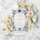 Possuir uma celebração de eterno com este elegante chá de panela floral azul, desenhado com um quadro clássico no estilo porcelana e delicados florescimentos botânicos. O marinho refinado e a paleta azul empoeirada é perfeito para um tema de noiva formal ou "algo azul". Com elegância vintage e simplicidade moderna, este convite combina com festas de jardim, chás de chá ou assuntos elegantes no interior. Personalize facilmente o texto para se adequar ao seu evento.