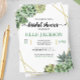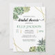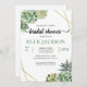 Nosso Chá de panela de Frame Geométrico Na moda Succulents faz parte de nossa Coleção de Casamentos de Suculentos Na moda. Esta coleção apresenta belas suculências de aquarelas verdes envoltas em uma estrutura geométrica dourada e caligrafia moderna com texto tradicional. Esta coleção de casamento é perfeita para casamentos de verão ou deserto.
