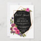 Este chá de panela exclusivo pop com estilo e sofisticação. Ele tem uma estrutura dupla geométrica com um fundo preto na seção central. As rosas cor-de-água roxas, brilhantes e violetas, enroladas nos cantos superior e inferior adicionam um pop de cor feminino. Personalize o modelo de texto com os detalhes do evento.