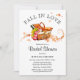 Um chá de panela minimalista com a tipografia "CAIR IN LOVE", um charmoso cesto de piquenique com lamparina de cordas e folhas de outono de farelo falsa. Este modelo de chá de panela é fácil de personalizar, permitindo que você adicione seus detalhes de evento exclusivos. Traga um toque de outono para a sua celebração com esta design. Compre agora para criar um convite para chás memorável que seus hóspedes irão amar.