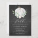 Se apaixonem! Celebrar com este chá de panela rústico e caprichoso. Apresenta ilustrações de aquarela de uma abóbora branca, verde e coroa de flores brancas com fundo de quadro negro falso. Personalize adicionando nomes, data, hora, local e outros detalhes do evento. Este convite para abóbora é perfeito para chás de panela de outono.