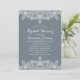 Convites de chá de panela de renda de Cinzas azuis. Apresentar um lindo padrão de renda e tipografia em um plano de fundo de cor simples personalizado (você pode mudar facilmente a cor do plano de fundo). Excelente elegante convite de noiva de luxo para festas criativas tradicionais. Este chá de panela foi projetado por http://www.superdazzle.com