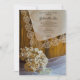 Convide convidados para uma festa pré-casamento honrando a noiva para estar com o charmoso Chá de panela de Lugar do País e Flores. Este Chá de casamento casual, porém clássico, do estilo rancho personalizado Invite apresenta uma fotografia floral tênue de madeira castanha rústica, um lenço branco vintage aparado de linho, flores silvestres secas, colar de pérolas brancas e um véu de brasa.