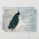 Este chá de panela apresenta o pavão de vintage e a borda superior do ornamentado no plano de fundo do aspecto de aquarela. De volta tem o mesmo fundo com uma pena de pavão. Personalize facilmente qualquer evento. Unidades de coordenação disponíveis em armazém.