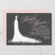 O chá de panela elegante para a noiva-a-ser apresenta uma fonte de escrita de caligrafia de ornamentado e um vestido de noiva fluente. O escroto floresce, flores e borboletas detalham o vestido etéreo. Cor branca, rosa claro e design preto de carvão.