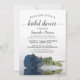 Este belo chá de panela mostra uma foto de uma cinza azul de aço empoeirado, solteiro, de longo rosa, de cor azul, deitada de lado, refletindo em uma piscina de água com ondas e ondulações. O título elegante da caligrafia de script empresta classe e estilo. Inclui informações sobre o registro do chá e do presente. Uma forma perfeita de celebrar a noiva.